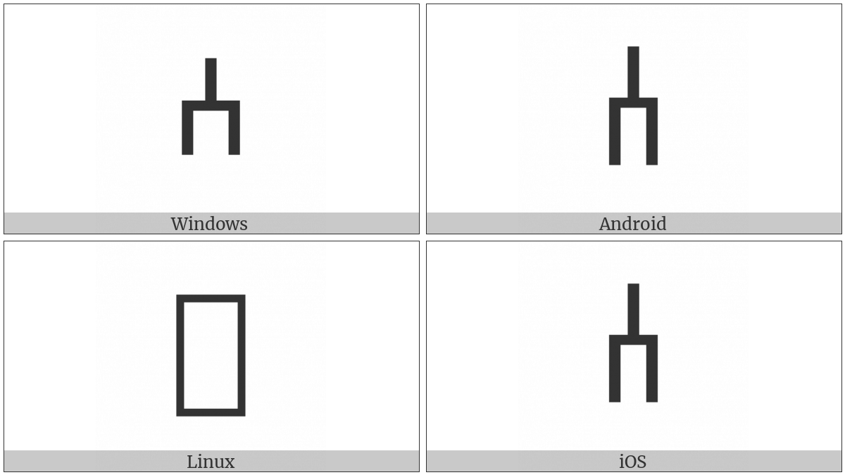 The image below shows how the “Old South Arabian Letter Sat” symbol might look like on different operating systems. If the font in which this web site is displayed does not contain the symbol and there is no fallback font able to render it, you can use the image below to get an idea of what it should look like.
