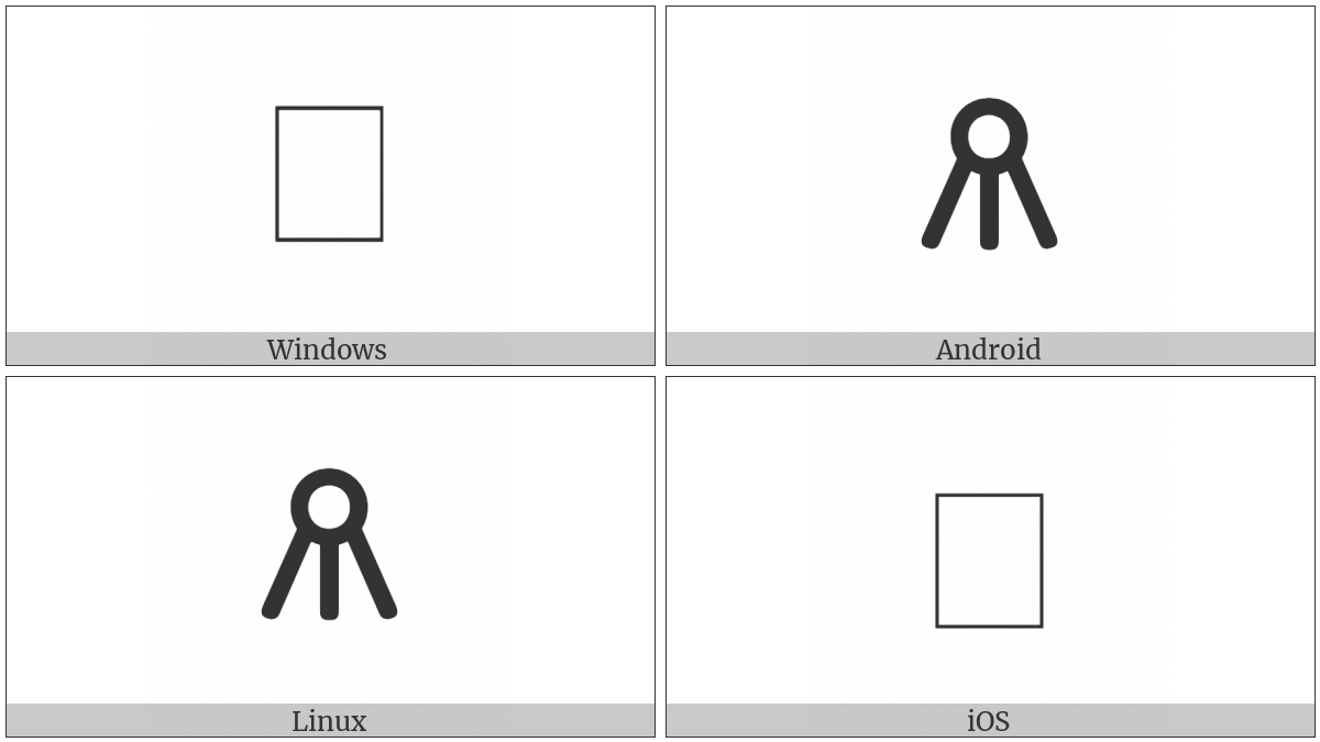 The image below shows how the “Old North Arabian Letter Sad” symbol might look like on different operating systems. If the font in which this web site is displayed does not contain the symbol and there is no fallback font able to render it, you can use the image below to get an idea of what it should look like.
