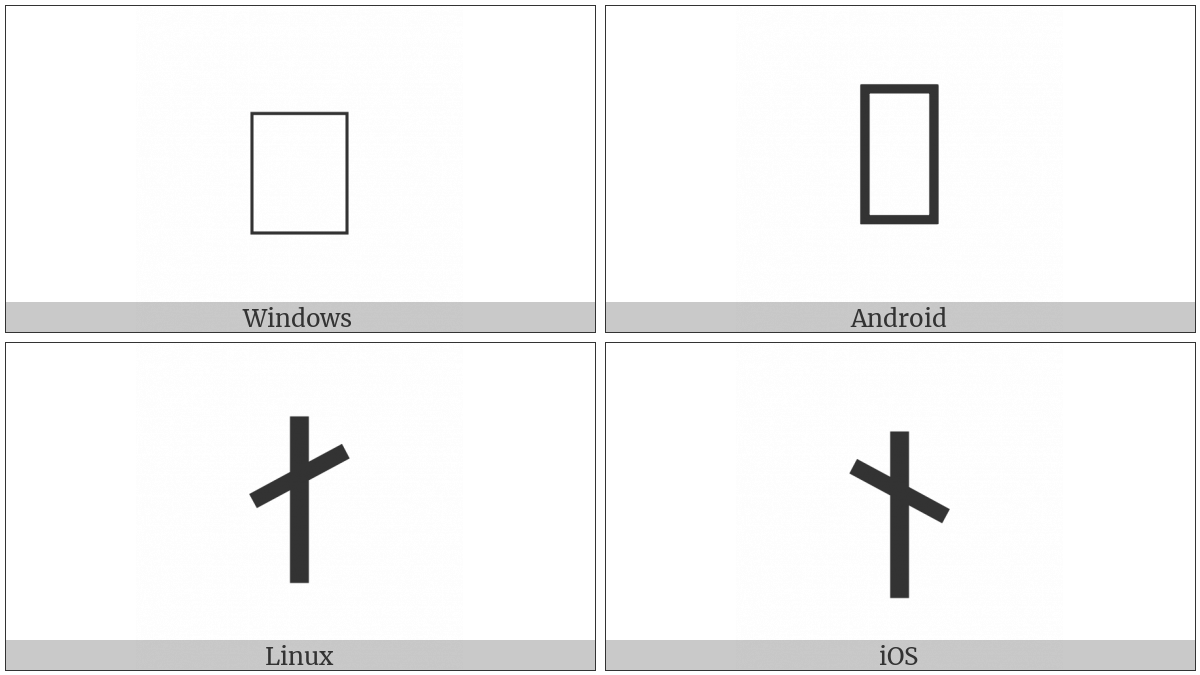 The image below shows how the “Old Hungarian Capital Letter I” symbol might look like on different operating systems. If the font in which this web site is displayed does not contain the symbol and there is no fallback font able to render it, you can use the image below to get an idea of what it should look like.