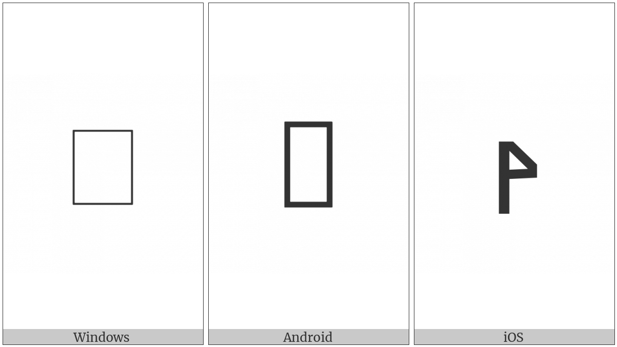 The image below shows how the “Old Hungarian Small Letter A” symbol might look like on different operating systems. If the font in which this web site is displayed does not contain the symbol and there is no fallback font able to render it, you can use the image below to get an idea of what it should look like.