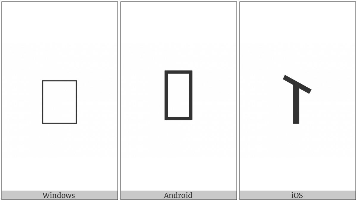 The image below shows how the “Old Hungarian Small Letter Ii” symbol might look like on different operating systems. If the font in which this web site is displayed does not contain the symbol and there is no fallback font able to render it, you can use the image below to get an idea of what it should look like.