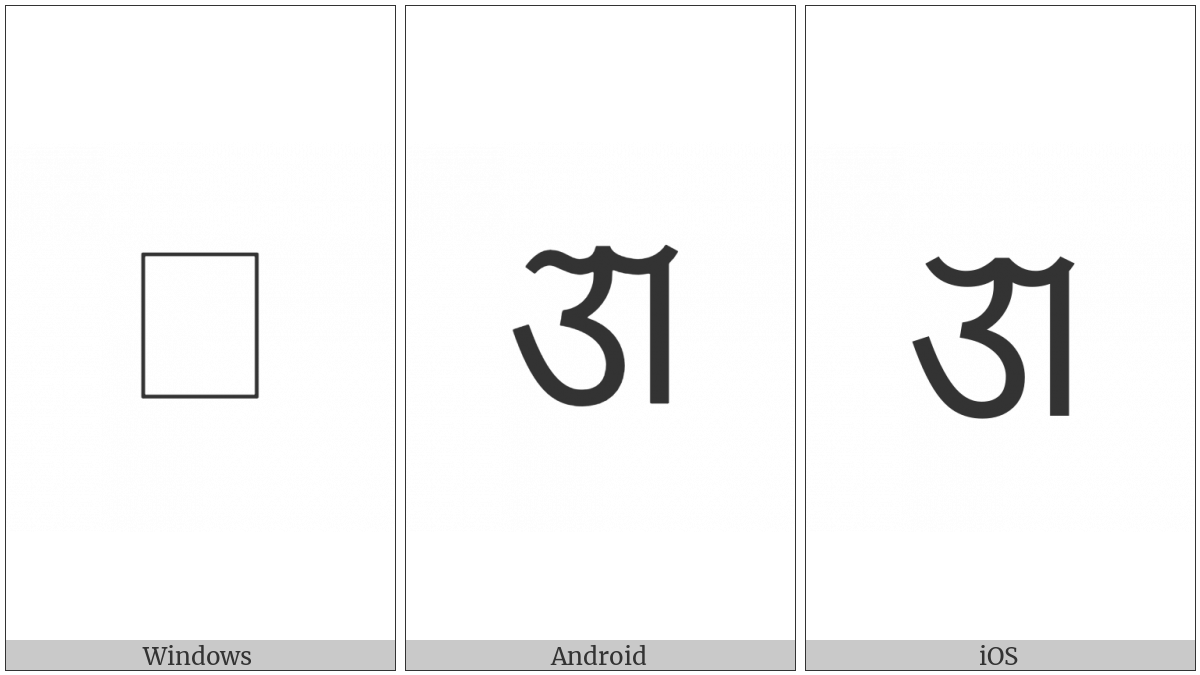 The image below shows how the “Newa Letter O” symbol might look like on different operating systems. If the font in which this web site is displayed does not contain the symbol and there is no fallback font able to render it, you can use the image below to get an idea of what it should look like.