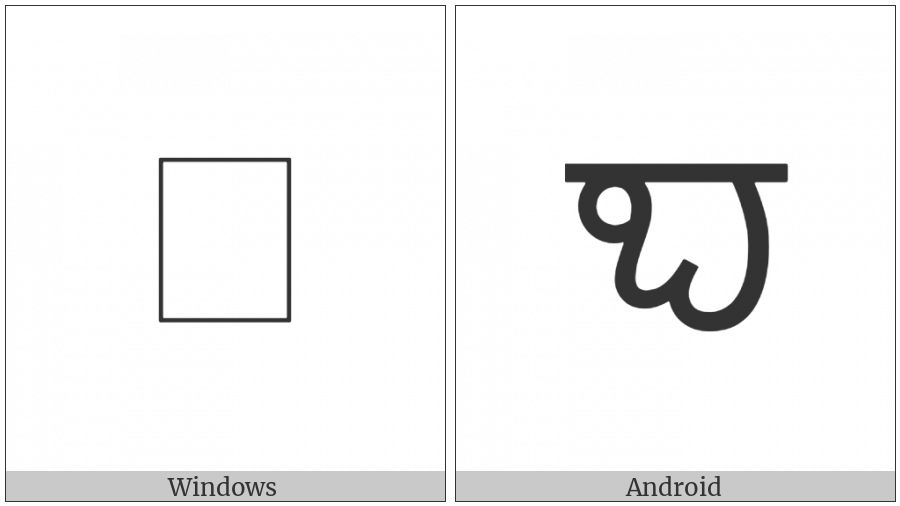 The image below shows how the “Modi Letter Tha” symbol might look like on different operating systems. If the font in which this web site is displayed does not contain the symbol and there is no fallback font able to render it, you can use the image below to get an idea of what it should look like.