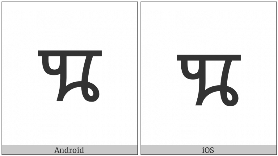 The image below shows how the “Modi Letter Pha” symbol might look like on different operating systems. If the font in which this web site is displayed does not contain the symbol and there is no fallback font able to render it, you can use the image below to get an idea of what it should look like.