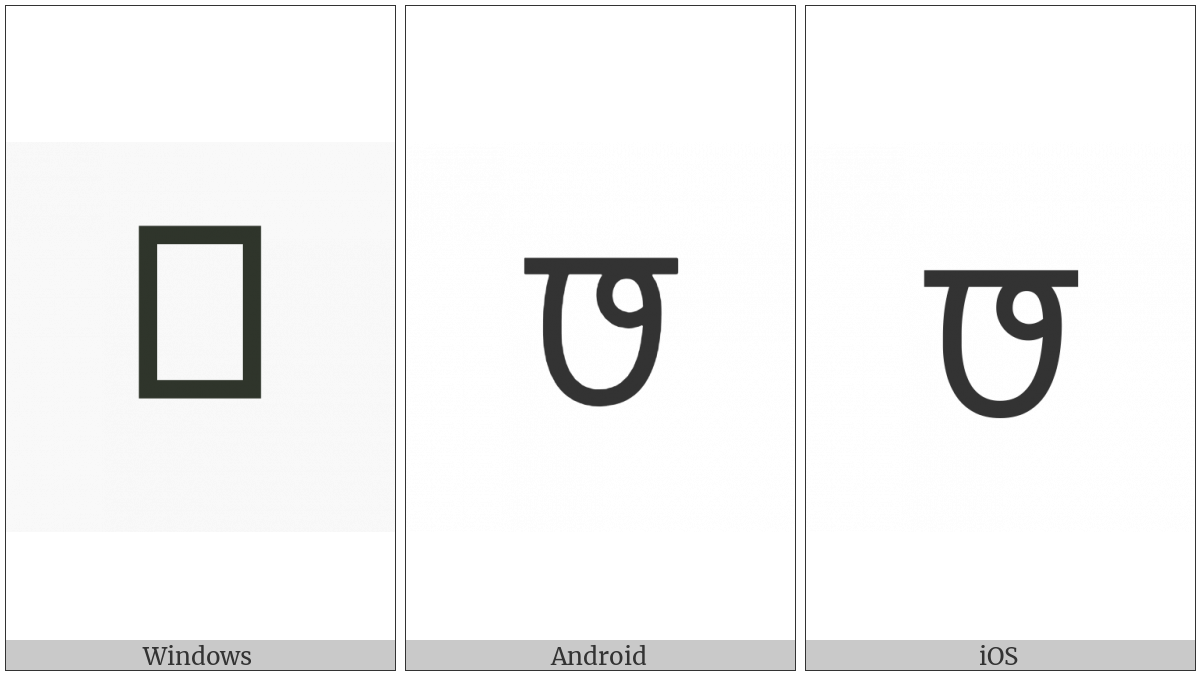 The image below shows how the “Modi Letter Sa” symbol might look like on different operating systems. If the font in which this web site is displayed does not contain the symbol and there is no fallback font able to render it, you can use the image below to get an idea of what it should look like.