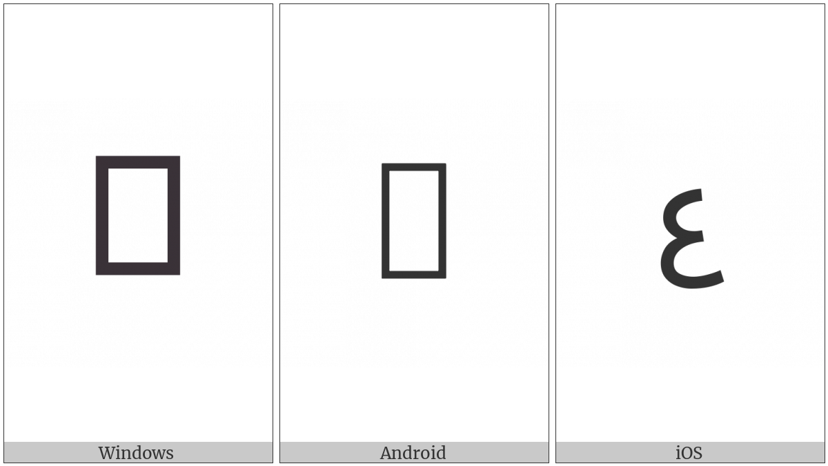 The image below shows how the “Modi Digit Six” symbol might look like on different operating systems. If the font in which this web site is displayed does not contain the symbol and there is no fallback font able to render it, you can use the image below to get an idea of what it should look like.