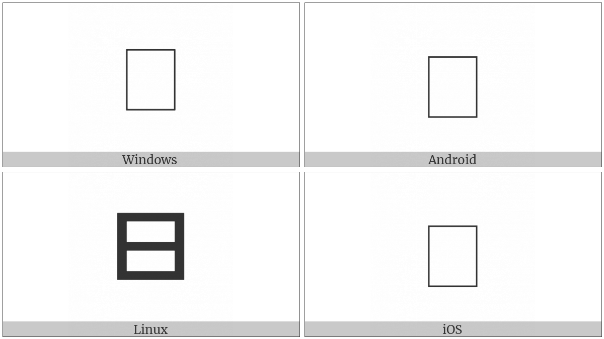 The image below shows how the “Zanabazar Square Letter Tha” symbol might look like on different operating systems. If the font in which this web site is displayed does not contain the symbol and there is no fallback font able to render it, you can use the image below to get an idea of what it should look like.