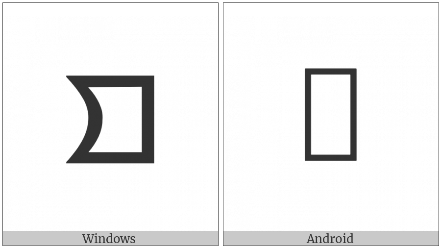 The image below shows how the “Zanabazar Square Letter Bha” symbol might look like on different operating systems. If the font in which this web site is displayed does not contain the symbol and there is no fallback font able to render it, you can use the image below to get an idea of what it should look like.