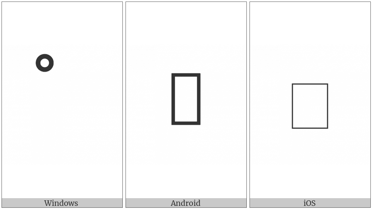 The image below shows how the “Zanabazar Square Sign Anusvara” symbol might look like on different operating systems. If the font in which this web site is displayed does not contain the symbol and there is no fallback font able to render it, you can use the image below to get an idea of what it should look like.