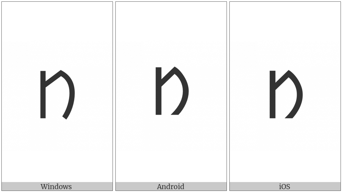 The image below shows how the “Ol Chiki Letter Ott” symbol might look like on different operating systems. If the font in which this web site is displayed does not contain the symbol and there is no fallback font able to render it, you can use the image below to get an idea of what it should look like.