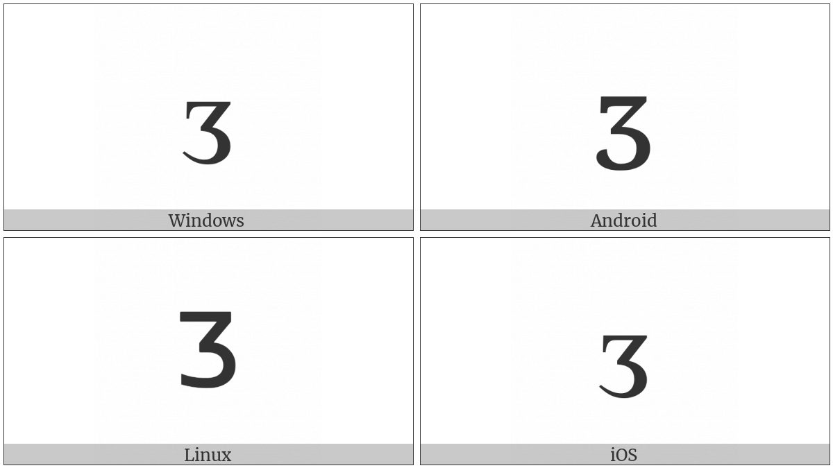 The image below shows how the “Latin Letter Small Capital Ezh” symbol might look like on different operating systems. If the font in which this web site is displayed does not contain the symbol and there is no fallback font able to render it, you can use the image below to get an idea of what it should look like.
