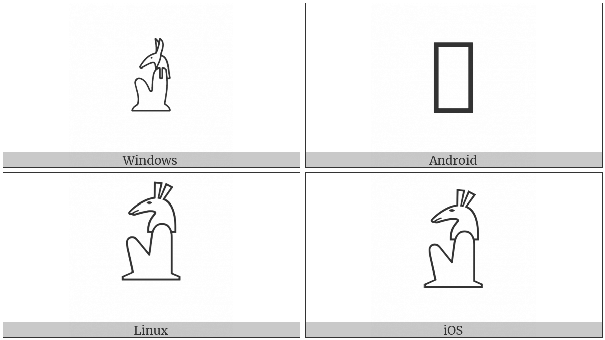 The image below shows how the “Egyptian Hieroglyph C007” symbol might look like on different operating systems. If the font in which this web site is displayed does not contain the symbol and there is no fallback font able to render it, you can use the image below to get an idea of what it should look like.