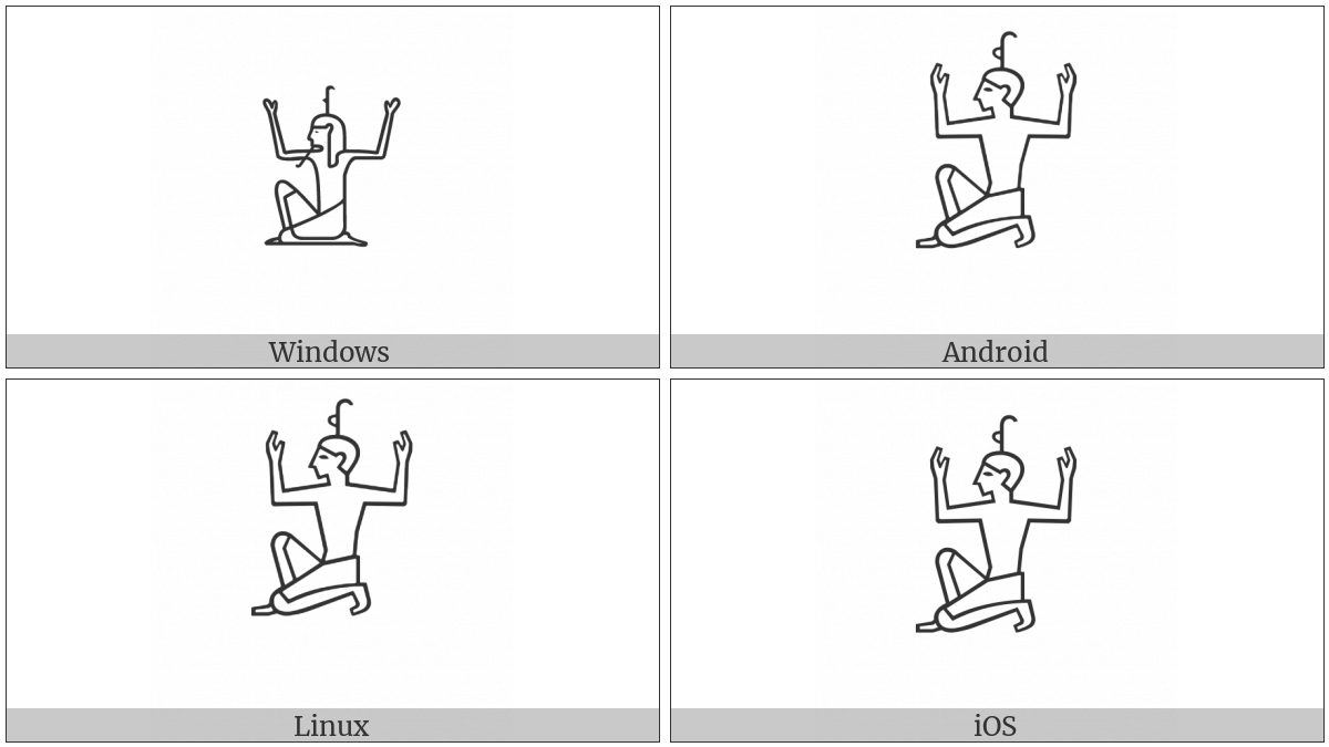 The image below shows how the “Egyptian Hieroglyph C011” symbol might look like on different operating systems. If the font in which this web site is displayed does not contain the symbol and there is no fallback font able to render it, you can use the image below to get an idea of what it should look like.