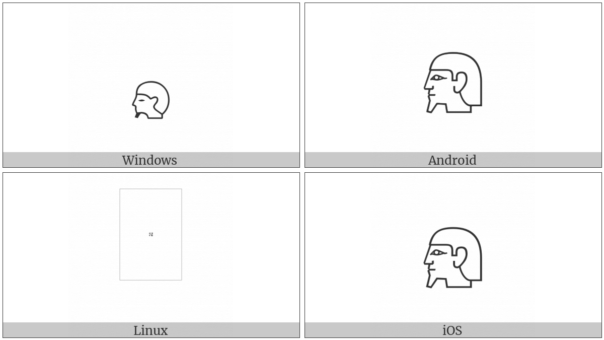 The image below shows how the “Egyptian Hieroglyph D001” symbol might look like on different operating systems. If the font in which this web site is displayed does not contain the symbol and there is no fallback font able to render it, you can use the image below to get an idea of what it should look like.