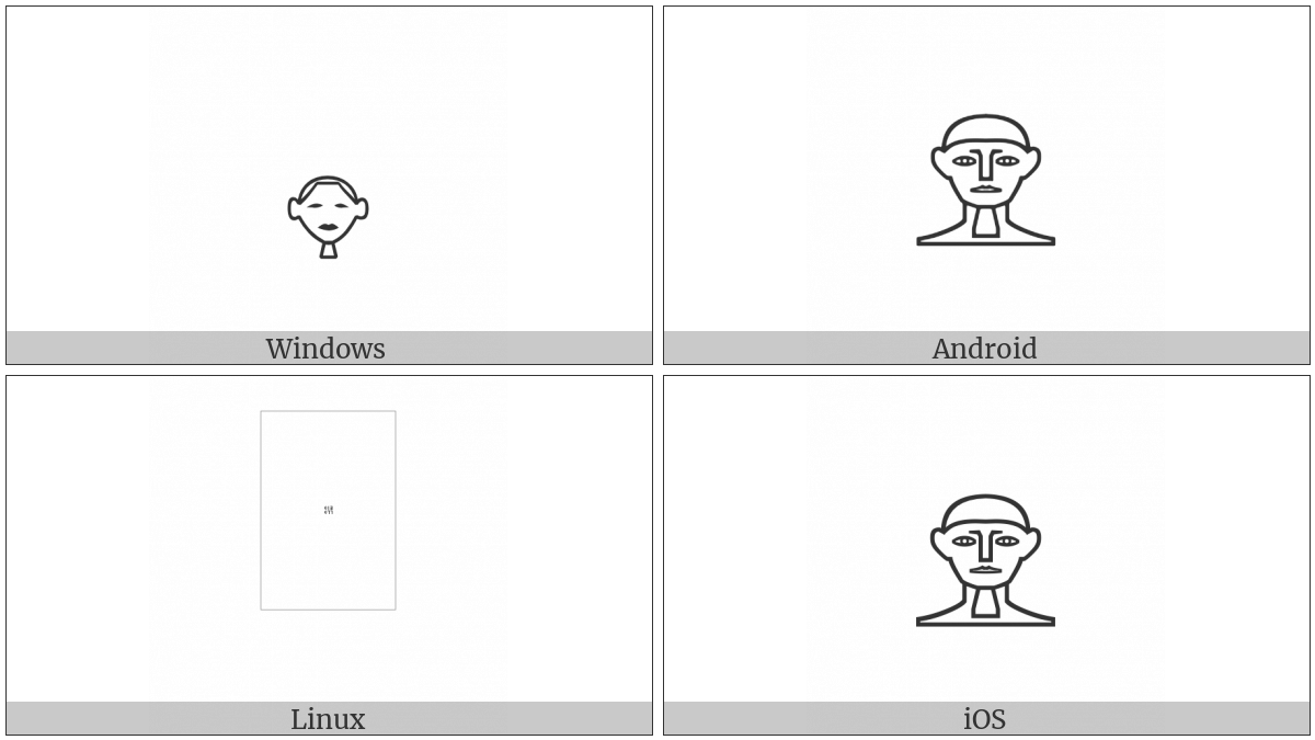 The image below shows how the “Egyptian Hieroglyph D002” symbol might look like on different operating systems. If the font in which this web site is displayed does not contain the symbol and there is no fallback font able to render it, you can use the image below to get an idea of what it should look like.