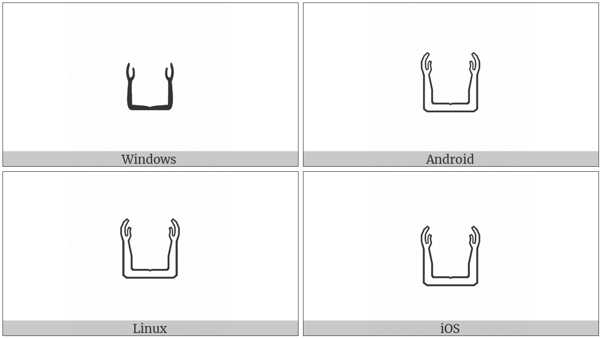 The image below shows how the “Egyptian Hieroglyph D028” symbol might look like on different operating systems. If the font in which this web site is displayed does not contain the symbol and there is no fallback font able to render it, you can use the image below to get an idea of what it should look like.