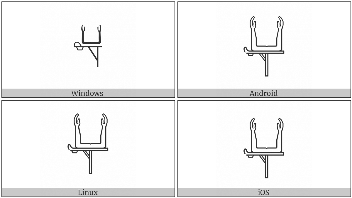 The image below shows how the “Egyptian Hieroglyph D029” symbol might look like on different operating systems. If the font in which this web site is displayed does not contain the symbol and there is no fallback font able to render it, you can use the image below to get an idea of what it should look like.