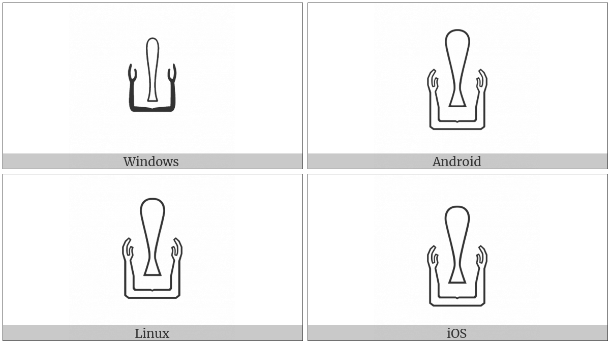 The image below shows how the “Egyptian Hieroglyph D031A” symbol might look like on different operating systems. If the font in which this web site is displayed does not contain the symbol and there is no fallback font able to render it, you can use the image below to get an idea of what it should look like.
