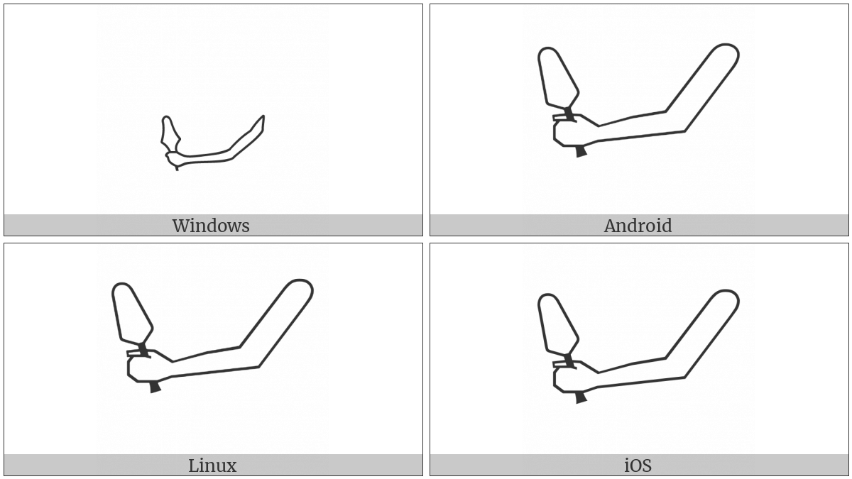 The image below shows how the “Egyptian Hieroglyph D045” symbol might look like on different operating systems. If the font in which this web site is displayed does not contain the symbol and there is no fallback font able to render it, you can use the image below to get an idea of what it should look like.