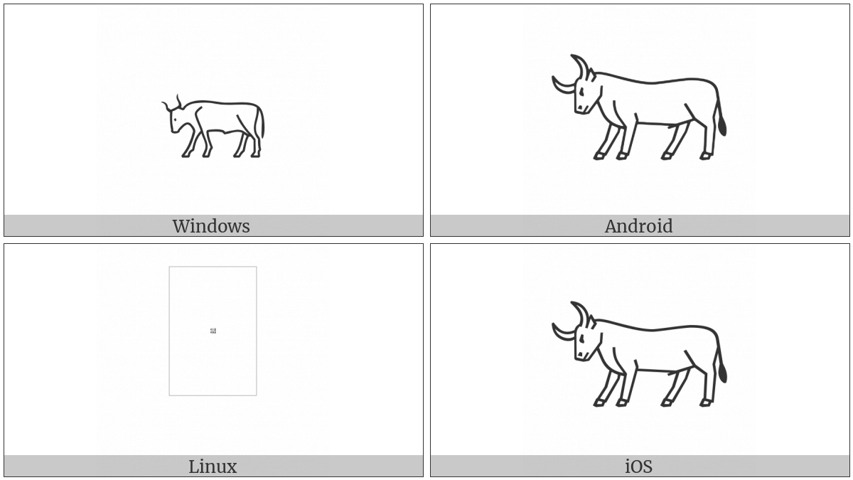 The image below shows how the “Egyptian Hieroglyph E002” symbol might look like on different operating systems. If the font in which this web site is displayed does not contain the symbol and there is no fallback font able to render it, you can use the image below to get an idea of what it should look like.