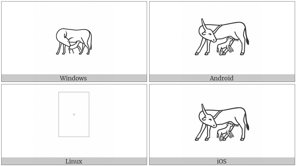 The image below shows how the “Egyptian Hieroglyph E005” symbol might look like on different operating systems. If the font in which this web site is displayed does not contain the symbol and there is no fallback font able to render it, you can use the image below to get an idea of what it should look like.