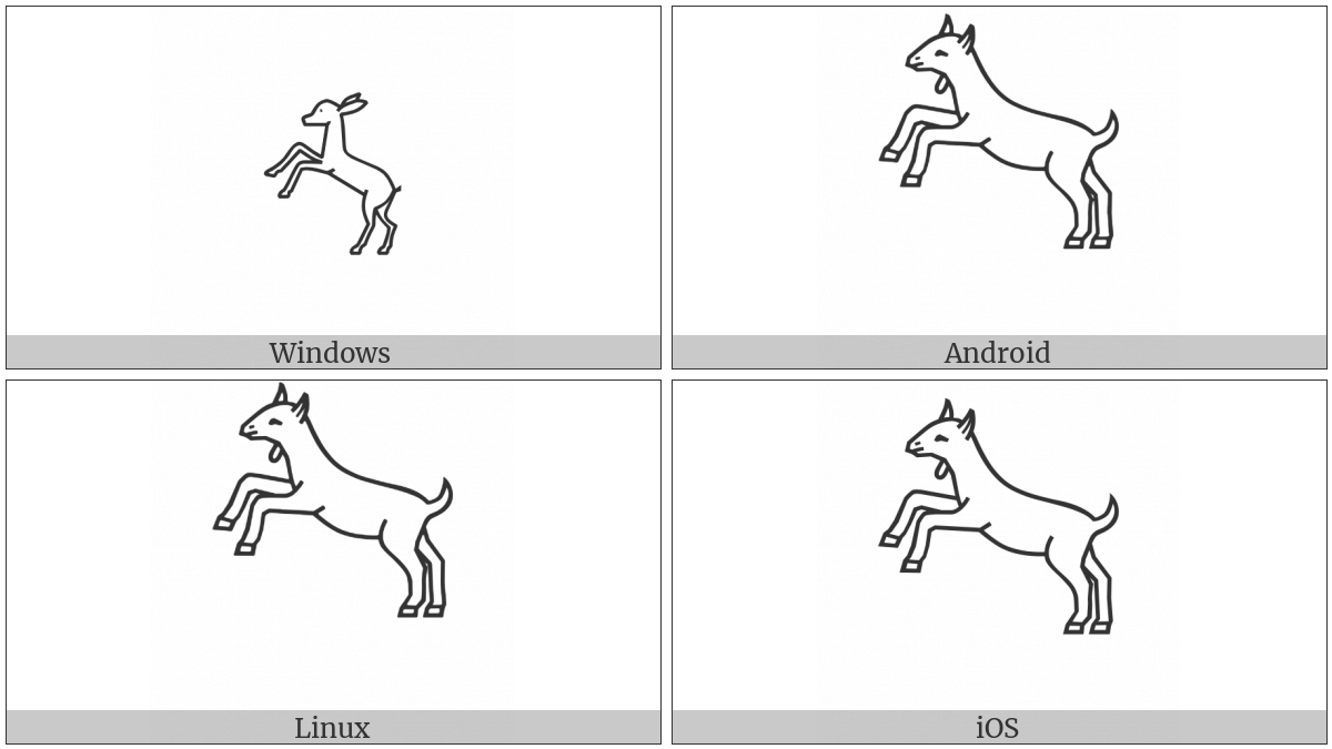 The image below shows how the “Egyptian Hieroglyph E008A” symbol might look like on different operating systems. If the font in which this web site is displayed does not contain the symbol and there is no fallback font able to render it, you can use the image below to get an idea of what it should look like.