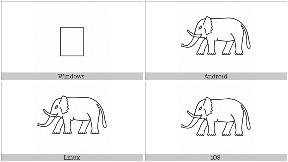 The image below shows how the “Egyptian Hieroglyph E026” symbol might look like on different operating systems. If the font in which this web site is displayed does not contain the symbol and there is no fallback font able to render it, you can use the image below to get an idea of what it should look like.