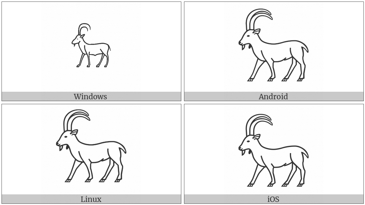 The image below shows how the “Egyptian Hieroglyph E030” symbol might look like on different operating systems. If the font in which this web site is displayed does not contain the symbol and there is no fallback font able to render it, you can use the image below to get an idea of what it should look like.