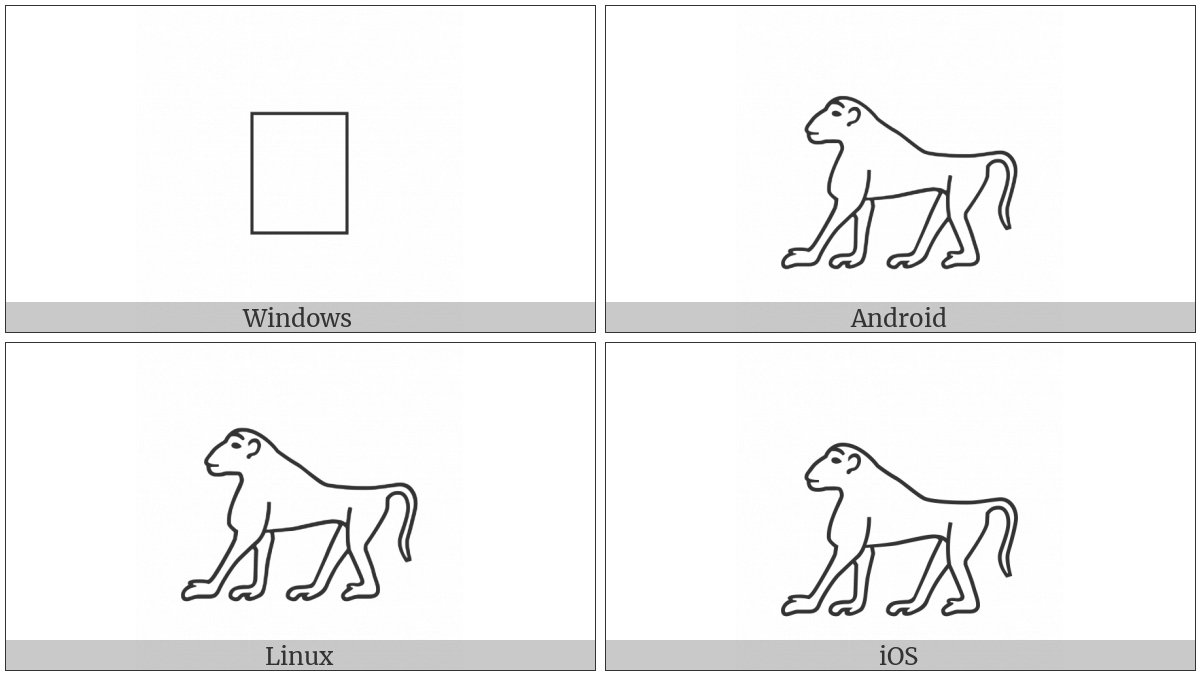 The image below shows how the “Egyptian Hieroglyph E032” symbol might look like on different operating systems. If the font in which this web site is displayed does not contain the symbol and there is no fallback font able to render it, you can use the image below to get an idea of what it should look like.