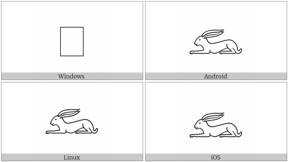 The image below shows how the “Egyptian Hieroglyph E034A” symbol might look like on different operating systems. If the font in which this web site is displayed does not contain the symbol and there is no fallback font able to render it, you can use the image below to get an idea of what it should look like.