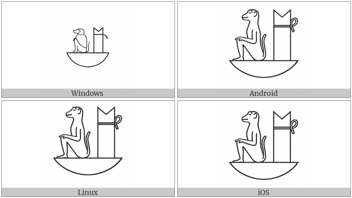 The image below shows how the “Egyptian Hieroglyph E037” symbol might look like on different operating systems. If the font in which this web site is displayed does not contain the symbol and there is no fallback font able to render it, you can use the image below to get an idea of what it should look like.