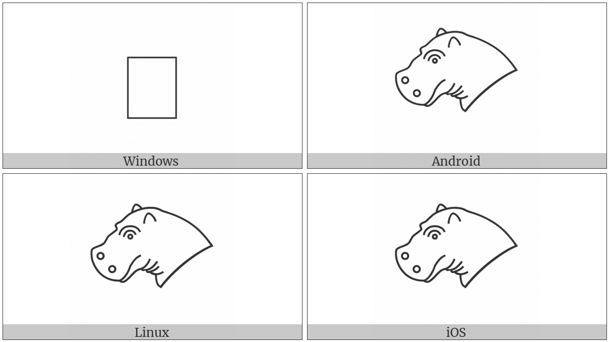 The image below shows how the “Egyptian Hieroglyph F003” symbol might look like on different operating systems. If the font in which this web site is displayed does not contain the symbol and there is no fallback font able to render it, you can use the image below to get an idea of what it should look like.