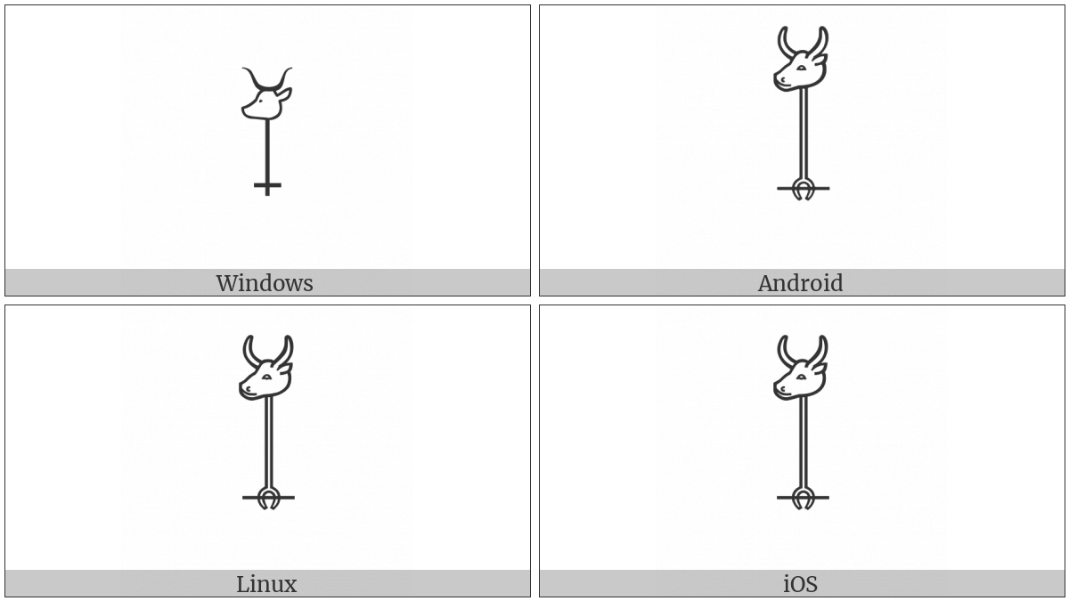 The image below shows how the “Egyptian Hieroglyph F010” symbol might look like on different operating systems. If the font in which this web site is displayed does not contain the symbol and there is no fallback font able to render it, you can use the image below to get an idea of what it should look like.