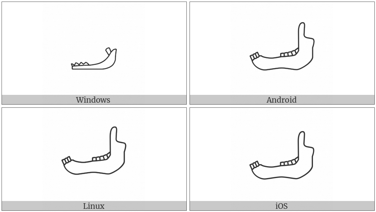 The image below shows how the “Egyptian Hieroglyph F019” symbol might look like on different operating systems. If the font in which this web site is displayed does not contain the symbol and there is no fallback font able to render it, you can use the image below to get an idea of what it should look like.