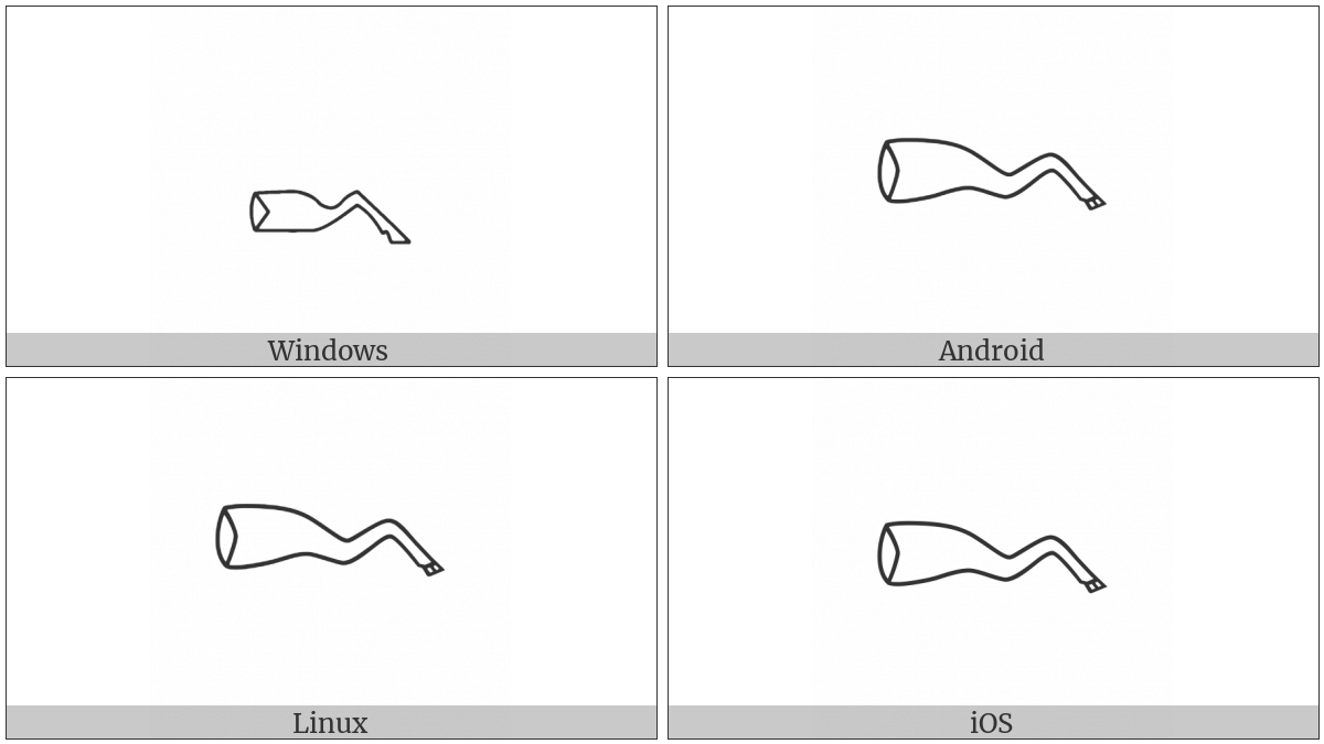 The image below shows how the “Egyptian Hieroglyph F024” symbol might look like on different operating systems. If the font in which this web site is displayed does not contain the symbol and there is no fallback font able to render it, you can use the image below to get an idea of what it should look like.
