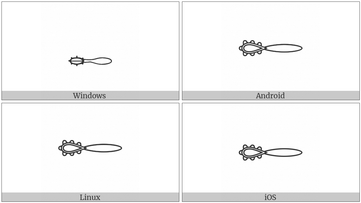 The image below shows how the “Egyptian Hieroglyph F032” symbol might look like on different operating systems. If the font in which this web site is displayed does not contain the symbol and there is no fallback font able to render it, you can use the image below to get an idea of what it should look like.