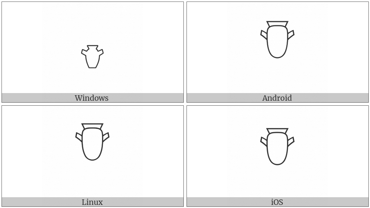 The image below shows how the “Egyptian Hieroglyph F034” symbol might look like on different operating systems. If the font in which this web site is displayed does not contain the symbol and there is no fallback font able to render it, you can use the image below to get an idea of what it should look like.