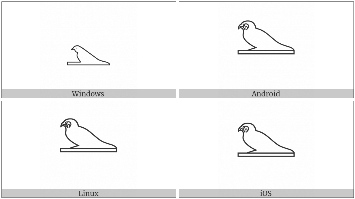 The image below shows how the “Egyptian Hieroglyph G011” symbol might look like on different operating systems. If the font in which this web site is displayed does not contain the symbol and there is no fallback font able to render it, you can use the image below to get an idea of what it should look like.