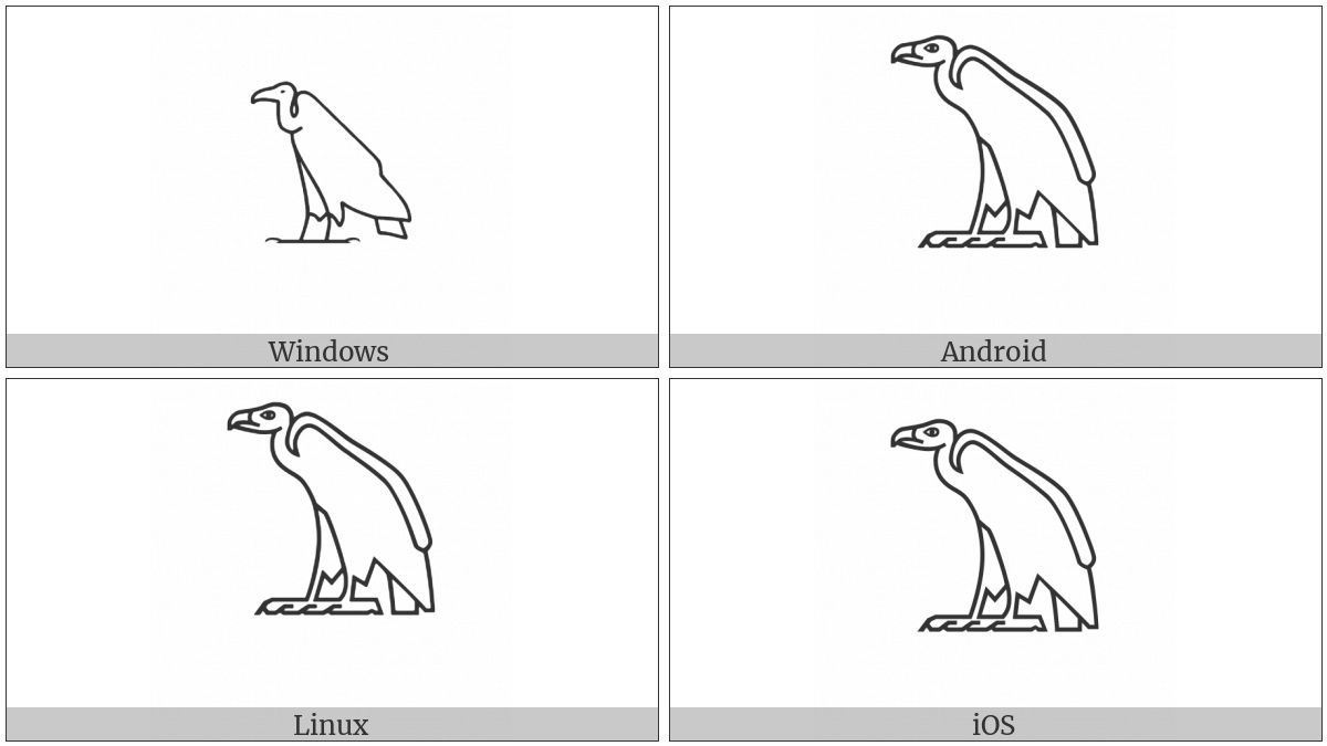 The image below shows how the “Egyptian Hieroglyph G014” symbol might look like on different operating systems. If the font in which this web site is displayed does not contain the symbol and there is no fallback font able to render it, you can use the image below to get an idea of what it should look like.