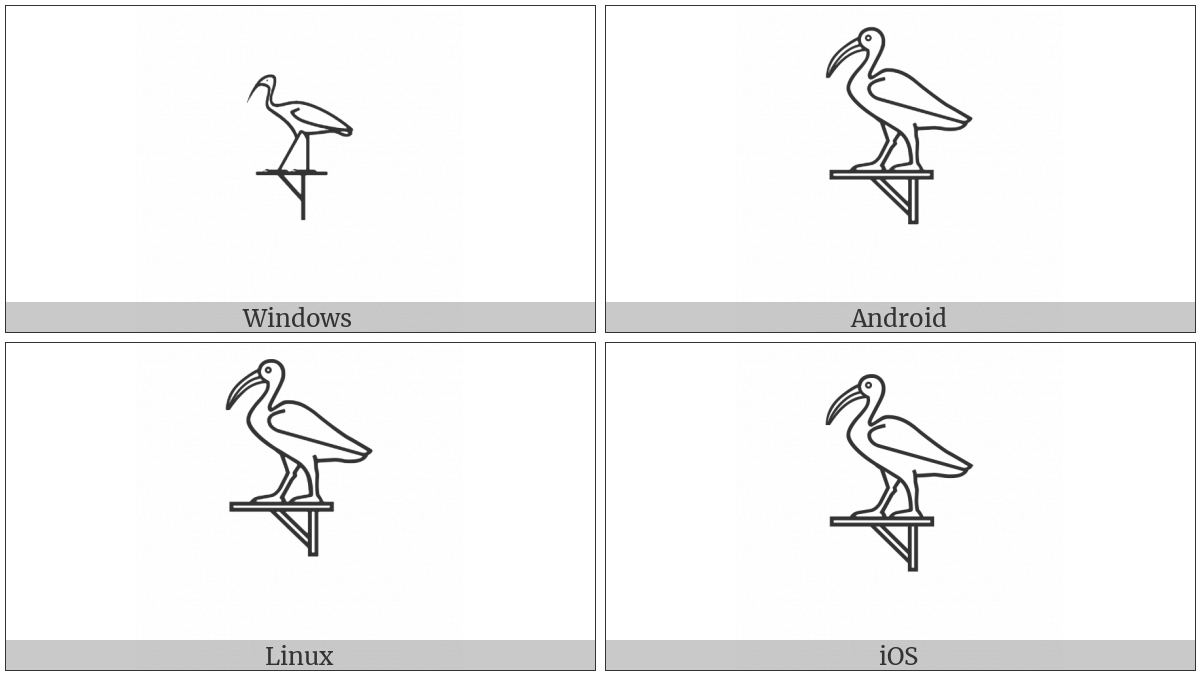 The image below shows how the “Egyptian Hieroglyph G026” symbol might look like on different operating systems. If the font in which this web site is displayed does not contain the symbol and there is no fallback font able to render it, you can use the image below to get an idea of what it should look like.