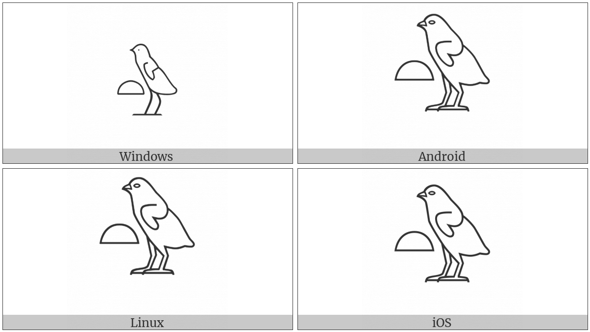The image below shows how the “Egyptian Hieroglyph G043A” symbol might look like on different operating systems. If the font in which this web site is displayed does not contain the symbol and there is no fallback font able to render it, you can use the image below to get an idea of what it should look like.