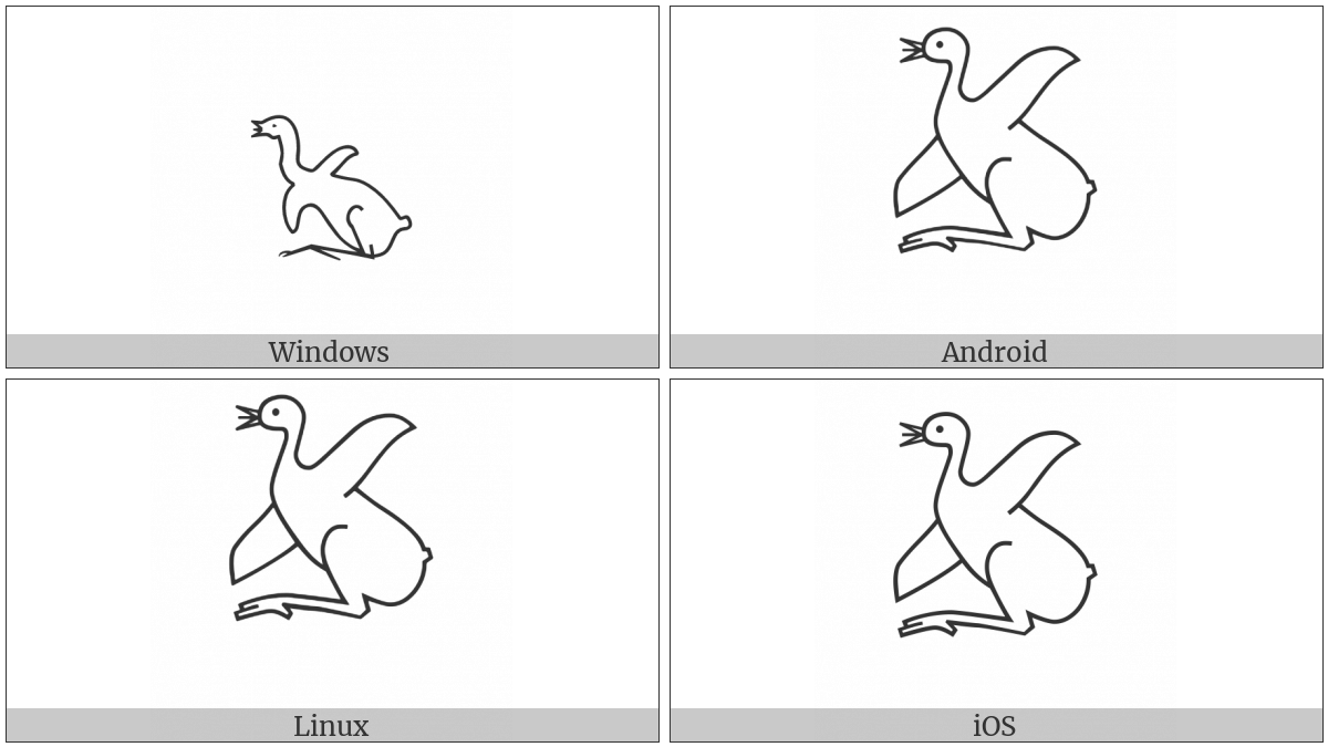 The image below shows how the “Egyptian Hieroglyph G047” symbol might look like on different operating systems. If the font in which this web site is displayed does not contain the symbol and there is no fallback font able to render it, you can use the image below to get an idea of what it should look like.