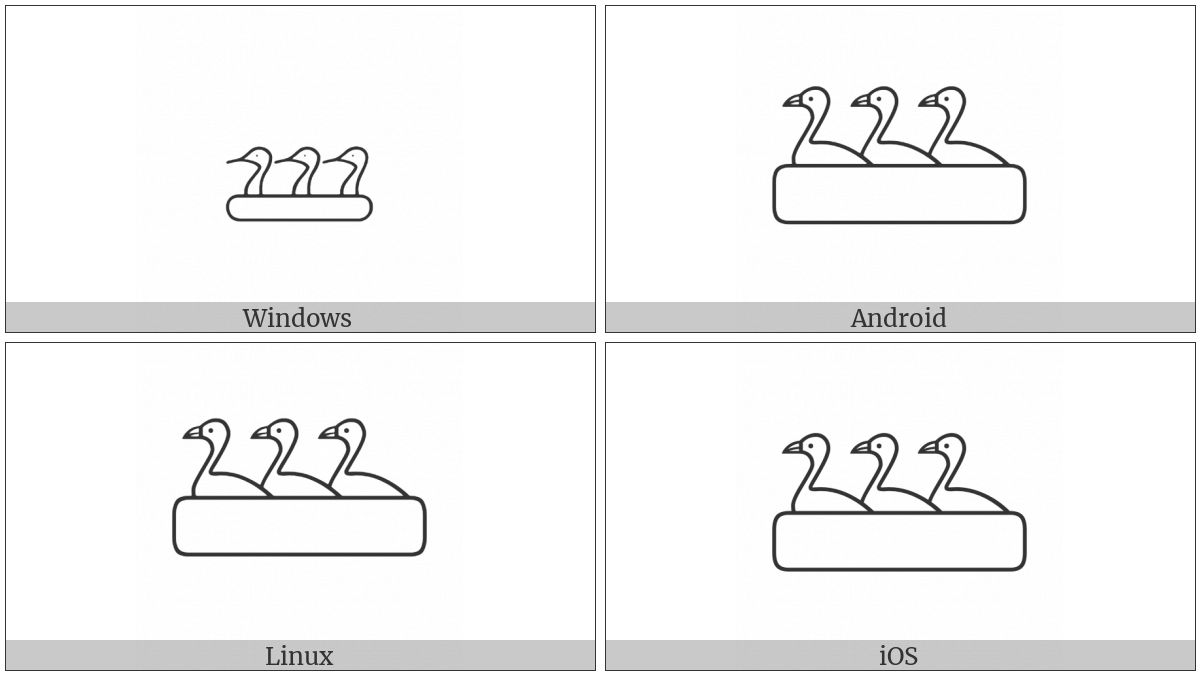 The image below shows how the “Egyptian Hieroglyph G049” symbol might look like on different operating systems. If the font in which this web site is displayed does not contain the symbol and there is no fallback font able to render it, you can use the image below to get an idea of what it should look like.