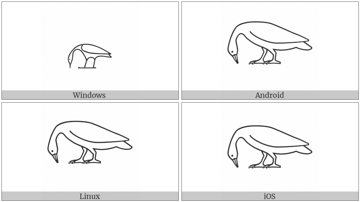 The image below shows how the “Egyptian Hieroglyph G052” symbol might look like on different operating systems. If the font in which this web site is displayed does not contain the symbol and there is no fallback font able to render it, you can use the image below to get an idea of what it should look like.
