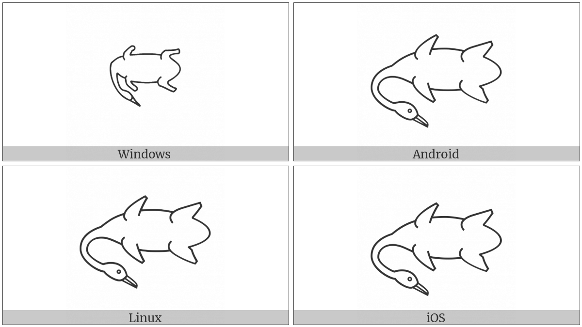 The image below shows how the “Egyptian Hieroglyph G054” symbol might look like on different operating systems. If the font in which this web site is displayed does not contain the symbol and there is no fallback font able to render it, you can use the image below to get an idea of what it should look like.