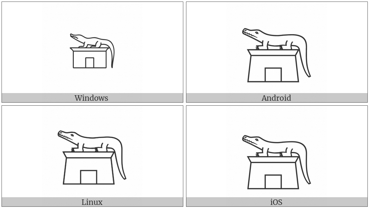 The image below shows how the “Egyptian Hieroglyph I004” symbol might look like on different operating systems. If the font in which this web site is displayed does not contain the symbol and there is no fallback font able to render it, you can use the image below to get an idea of what it should look like.