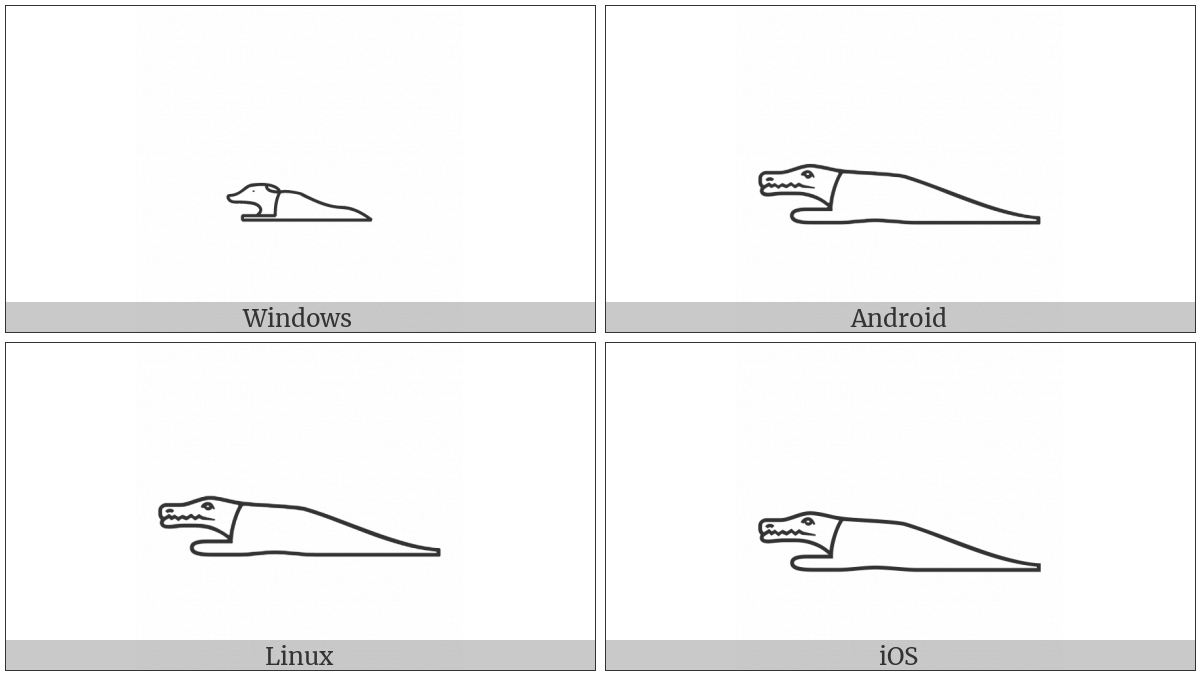 The image below shows how the “Egyptian Hieroglyph I005A” symbol might look like on different operating systems. If the font in which this web site is displayed does not contain the symbol and there is no fallback font able to render it, you can use the image below to get an idea of what it should look like.