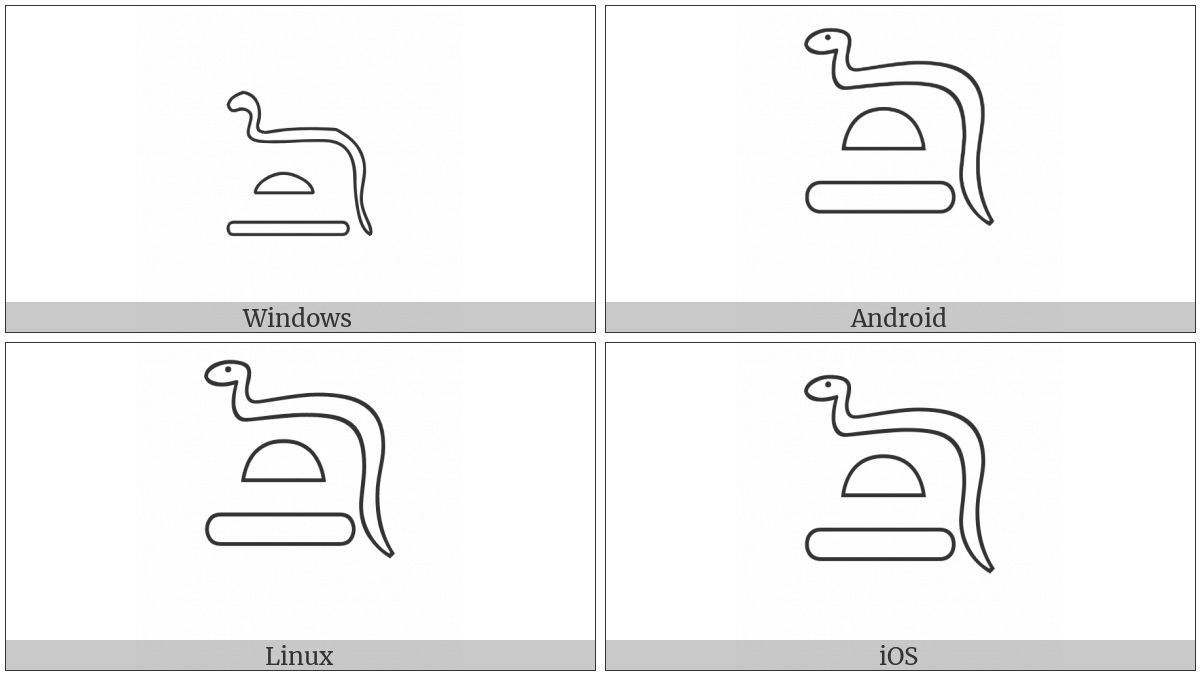 The image below shows how the “Egyptian Hieroglyph I011A” symbol might look like on different operating systems. If the font in which this web site is displayed does not contain the symbol and there is no fallback font able to render it, you can use the image below to get an idea of what it should look like.