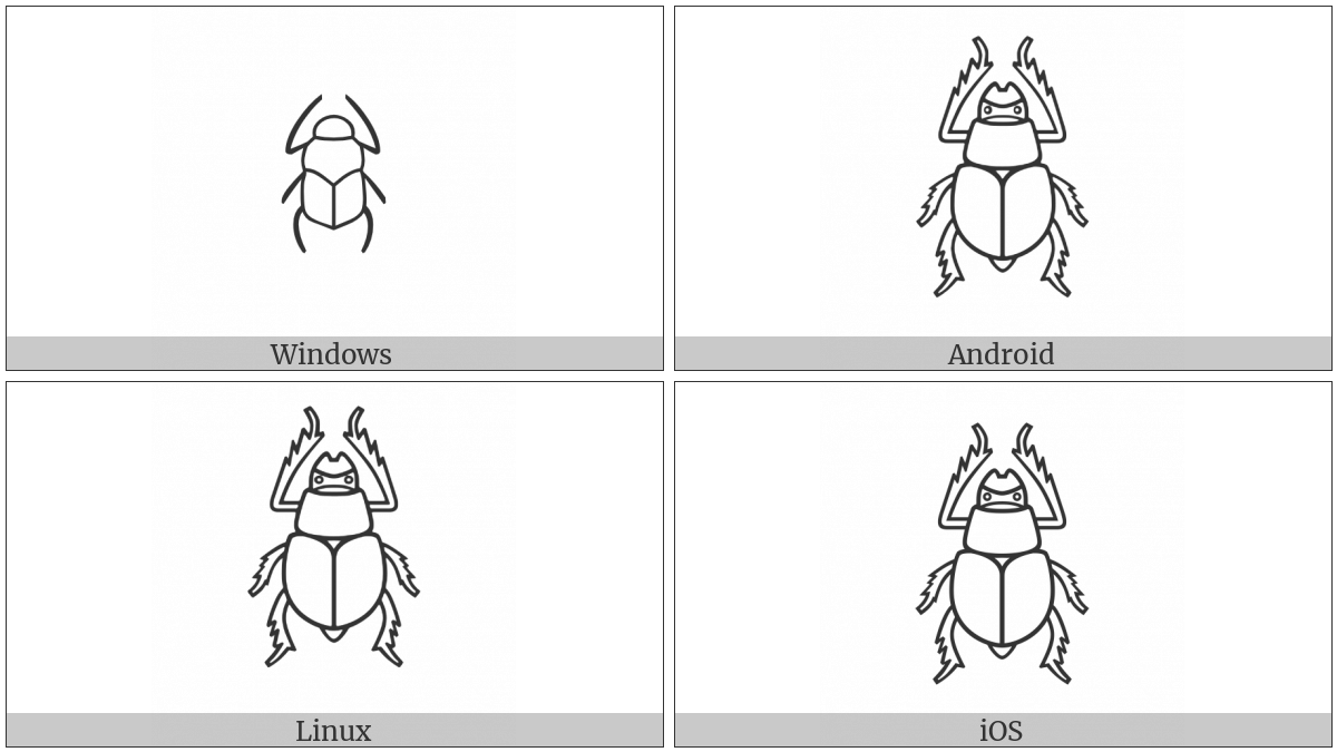 The image below shows how the “Egyptian Hieroglyph L001” symbol might look like on different operating systems. If the font in which this web site is displayed does not contain the symbol and there is no fallback font able to render it, you can use the image below to get an idea of what it should look like.