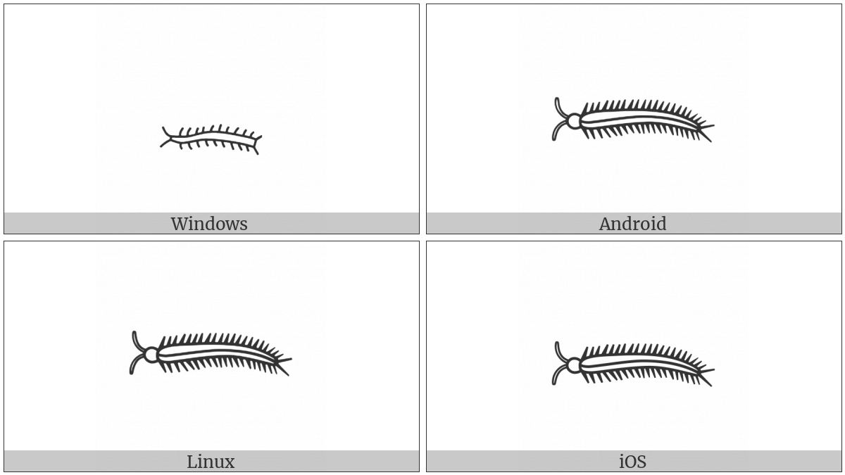 The image below shows how the “Egyptian Hieroglyph L005” symbol might look like on different operating systems. If the font in which this web site is displayed does not contain the symbol and there is no fallback font able to render it, you can use the image below to get an idea of what it should look like.